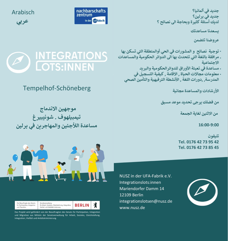 Das Projekt „Integrationslotsinnen und Integrationslotsen“ wird aus Mitteln der Senatsverwaltung für Integration, Arbeit und Soziales im Landesrahmenprogramm Integrationslotsinnen und Integrationslotsen Berlin gefördert.