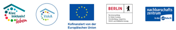 „Kiez inklusiv leben“ ist das Motto vom Projekt „Teilhabe orientiertes Sozialraum-Management“. Es wird umgesetzt vom VskA Berlin. Zusammen mit der Senatsverwaltung für Soziales. Gefördert von der Europäischen Union und vom Land Berlin.